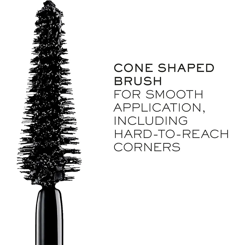 - Kūgio formos šepetėlis: Specialiai suprojektuotas taip, kad smailėjantis galiukas pasiektų net smulkiausias blakstienas vidiniuose akių kampučiuose, o plati apačia suteiktų apimties išoriniuose.