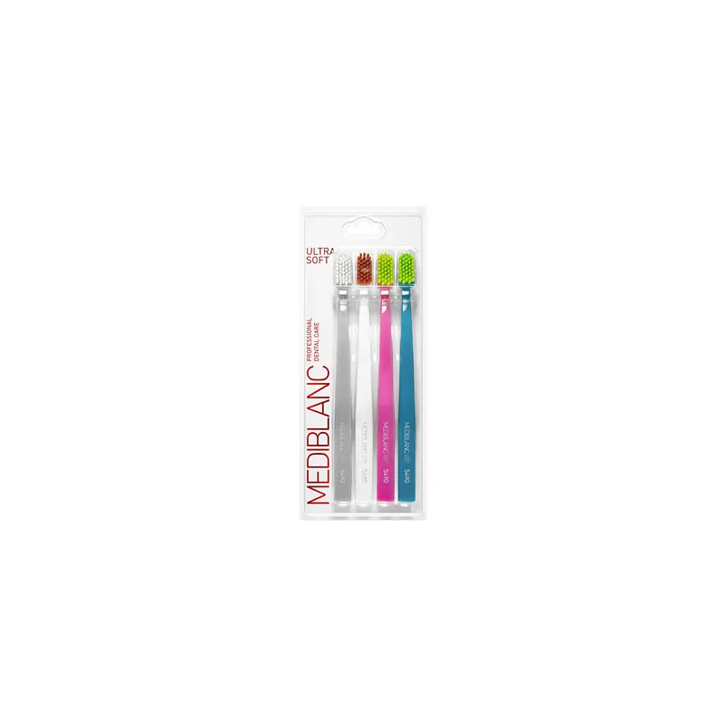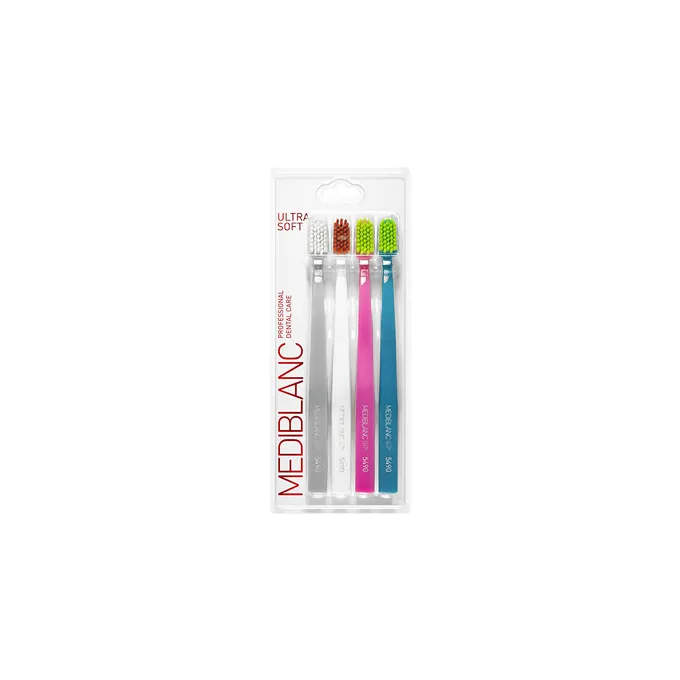 MEDIBLANC Ultra Soft 4 pcs – tai profesionalios kokybės itin minkštų šepetėlių rinkinys, skirtas jautriems dantims ir dantenoms. Puikus pasirinkimas kasdienei higienai, kai svarbiausia – švelnumas ir efektyvus valymas viename.