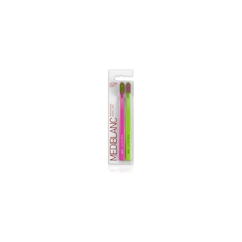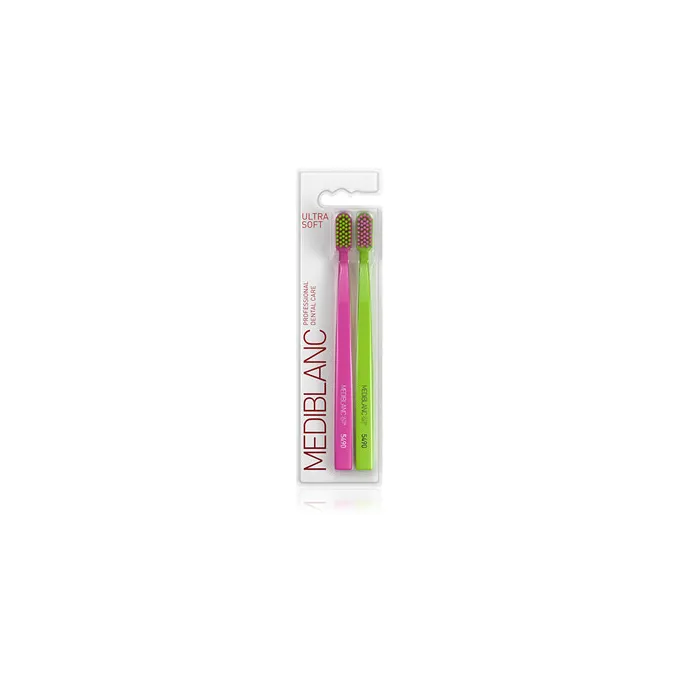MEDIBLANC Ultra Soft Pink/Green 2 pcs – tai profesionalios kokybės itin minkšti šepetėliai, skirti maksimaliam komfortui ir švelniai, bet veiksmingai burnos higienai. Puikus pasirinkimas jautriems dantims ir kasdieniam naudojimui.