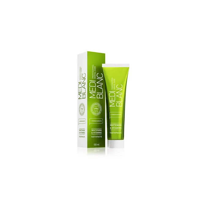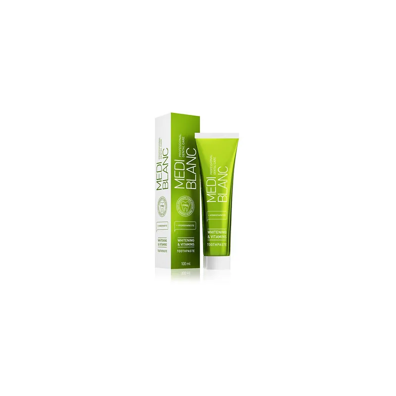 MEDIBLANC Whitening & Vitamins Toothpaste – tai balinamoji dantų pasta su vitaminų kompleksu, skirta kasdienei burnos higienai, emalio stiprinimui ir dantenų priežiūrai. Ši formulė sujungia švelnų balinamąjį poveikį su aktyviais vitaminais, padedančiais palaikyti sveiką burnos būklę.
