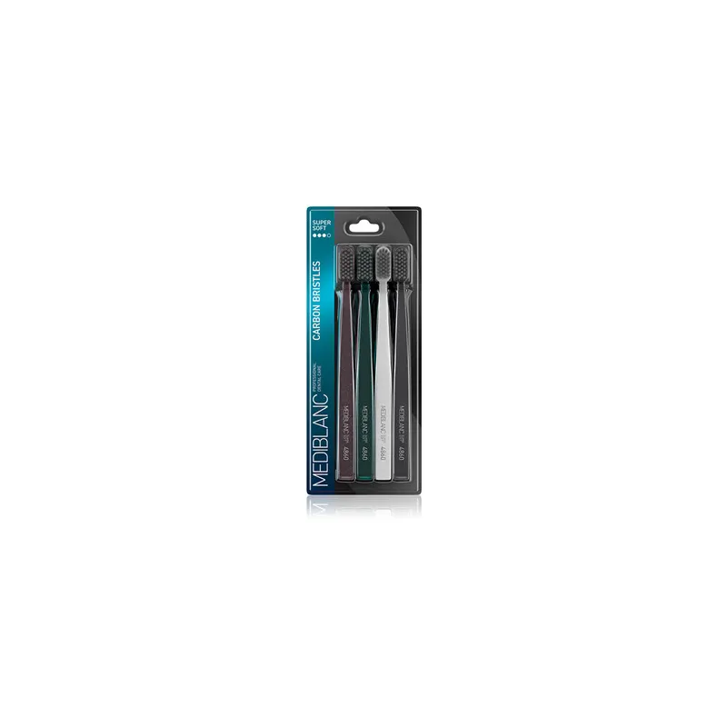 MEDIBLANC Toothbrush with carbon bristles 4 pcs – tai praktiškas pasirinkimas kasdienei burnos higienai, suteikiantis švaros ir gaivos pojūtį. Anglies šereliai ir švelni konstrukcija užtikrina subalansuotą valymo efektą tiek dantims, tiek dantenoms.