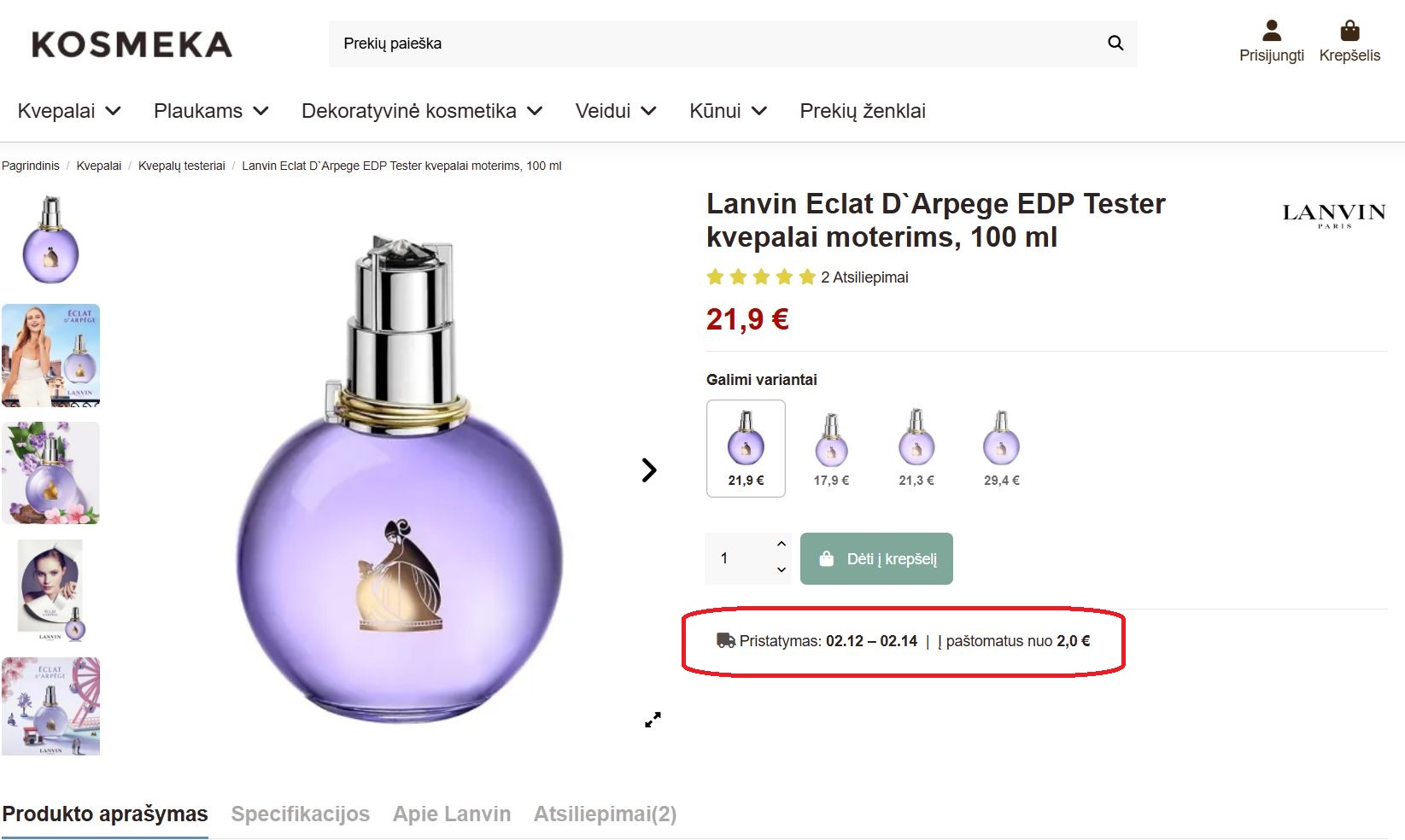 Numatomas pristatymo laikas nurodytas prie kiekvienos prekės.