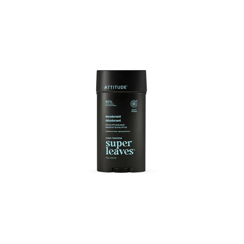 Attitude Super Leaves Eucalyptus & Sage Deodorant - natūralus vyriškas pieštukinis dezodorantas, 75 g