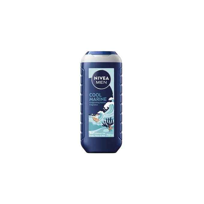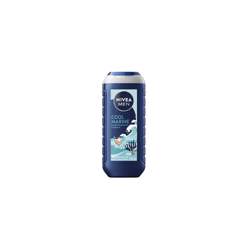 Nivea Men Cool Marine 3 in 1 Shower Gel - Dušo želė odai ir plaukams, 250 ml