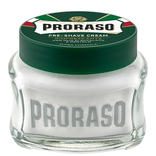 • Proraso Green (Eucalyptus & Menthol) – gaivinanti linija su eukaliptu ir mentoliu, suteikianti vėsinantį efektą ir energiją skutimosi metu.