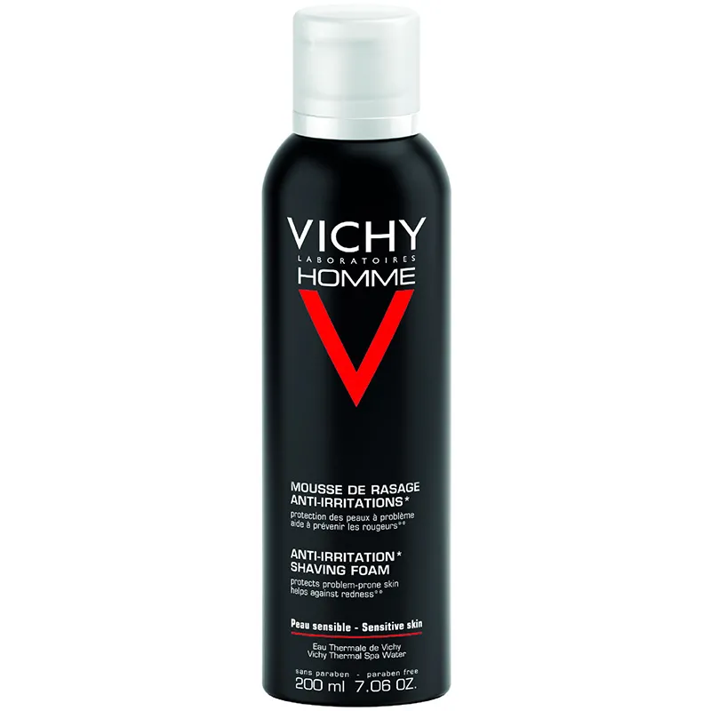 Vichy Men´s Shaving Foam - skutimosi putos nuo sudirginimo jautriai odai vyrams, 200 ml