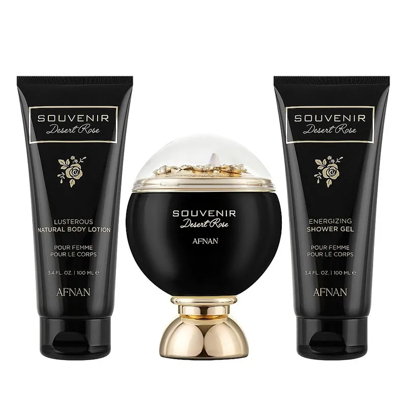 Afnan Souvenir Desert Rose dovanų rinkinys – EDP 100 ml, dušo želė 100 ml ir kūno losjonas 100 ml