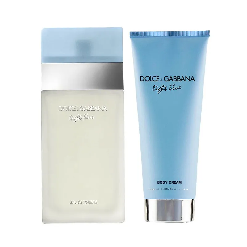 - Dolce&Gabbana Light Blue kūno kremas 50 ml: Turtingas ir drėkinantis kūno kremas, praturtintas tuo pačiu žvaliu Light Blue aromatu, suteikiantis odai švelnumo, glotnumo ir subtilaus kvapo.