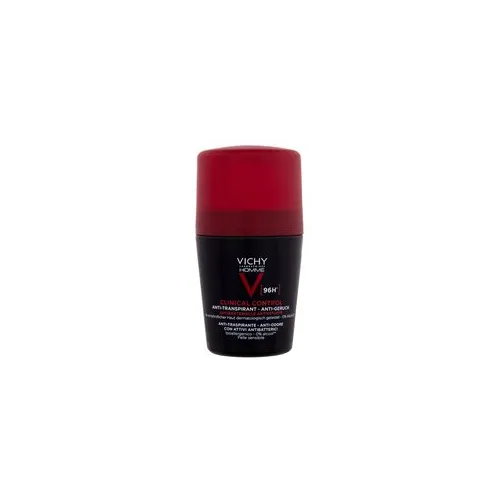 Vichy Homme Clinical Control 96H Antiperspirant yra itin efektyvus rutulinis antiperspirantas, sukurtas maksimaliai kontrolei – jis reguliuoja gausų prakaitavimą (hiperhidrozę) ir neutralizuoja nemalonų kvapą iki 96 valandų.