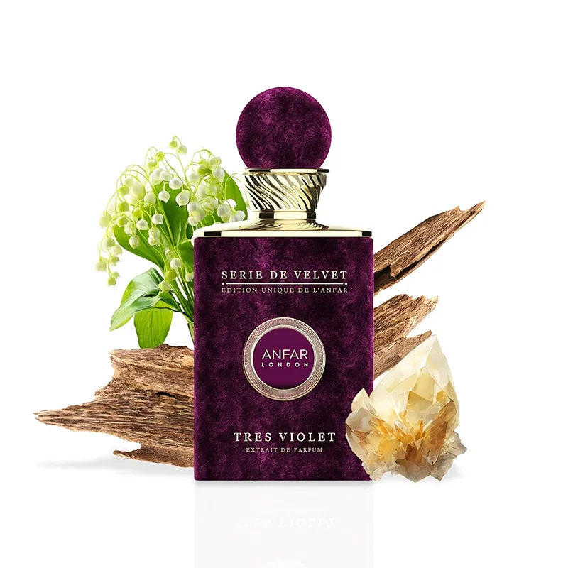 „Tres Violet“ – tai rafinuotas ir žavingas gėlių-vaisinis aromatas, sukurtas Anfar London. Šis kvapas prasideda gaiviu apelsinų žiedų, ličio ir baltojo ambros deriniu, suteikdamas energingą ir pakylėtą įspūdį. Palaipsniui atsiskleidžia švelnūs Peru balzamo ir lelijos akordai, kurie prideda gėlių ir saldumo, o pagrindiniai medienos ir muskuso akordai suteikia šilumos ir ilgalaikį išlikimą.