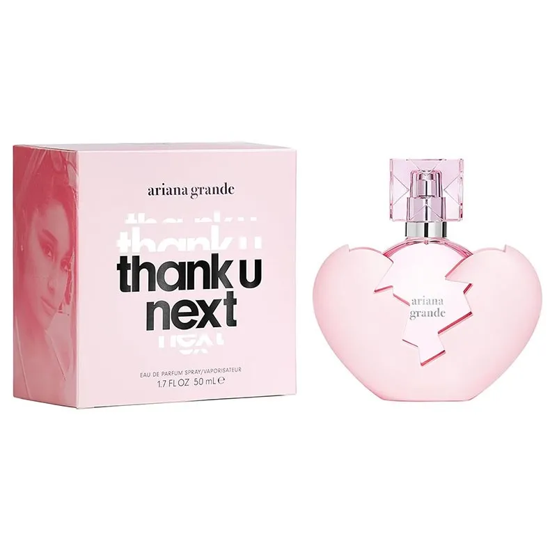 Thank U Next prasideda gaiviais šampano ir vaisių tonais, pereinančiais į švelnias gėlių ir kokoso natas. Pabaigoje muskuso ir medienos akordai suteikia kvapui šiltą ir ilgai išliekantį efektą. Tai kvapas, kuris suteikia moteriai elegancijos, šviežumo ir pasitikėjimo, puikiai tinkantis tiek kasdieniam naudojimui, tiek ypatingoms progoms.