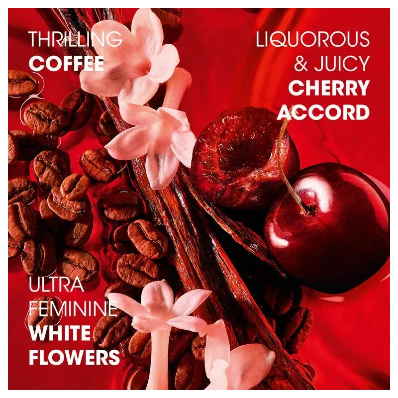 Black Opium Over Red – drąsi, jausminga ir moderni ikoninio Black Opium interpretacija, kurioje klasikinė kavos energija susilieja su sultingu vyšnių akordu. Šie Eau de Parfum kvepalai spinduliuoja gundančia saldumo ir intensyvumo dermėmis, kurias papildo moteriškas gėlių švelnumas ir šiltas, priklausomybę kuriantis pagrindas. Tai kvapas, skirtas vakarui, emocijoms ir ryškiam saviraiškos pojūčiui.