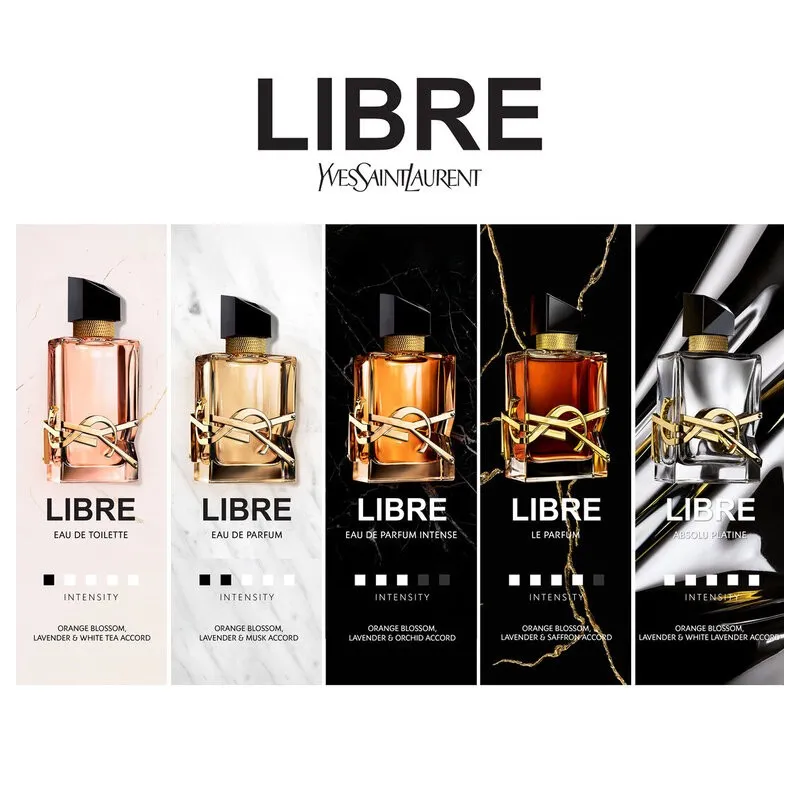 - Yves Saint Laurent Libre – elegantiškas aromatas, perteikiantis laisvės ir stiprios moteriškos tapatybės idėją.