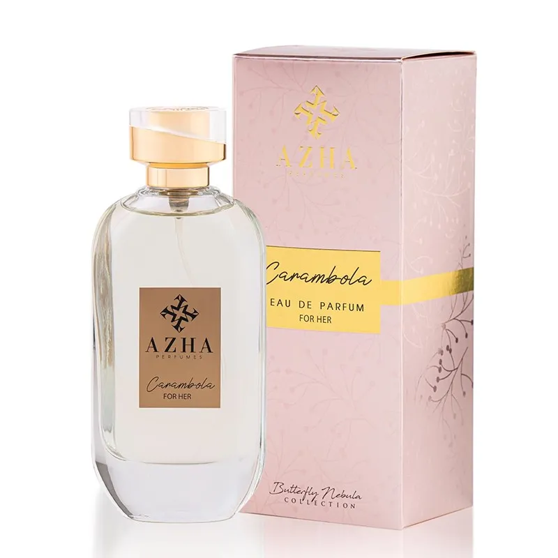 Azha Perfumes Carambola EDP atsiveria subtiliu ir prabangiu ylang-ylang aromatu. Kvapo širdyje skleidžiasi saldus rožių ir gaivus mandarinų derinys, suteikiantis kompozicijai šilumos ir švelnumo. Bazinė nata – pačiulis – suteikia kvapui gilumo, žemiškumo ir ilgalaikio jausmingumo. Šie kvepalai pasižymi ilgai išliekančiu aromatu ir yra puikus pasirinkimas moterims, norinčioms pabrėžti savo eleganciją ir palikti įsimintiną įspūdį bet kokia proga.