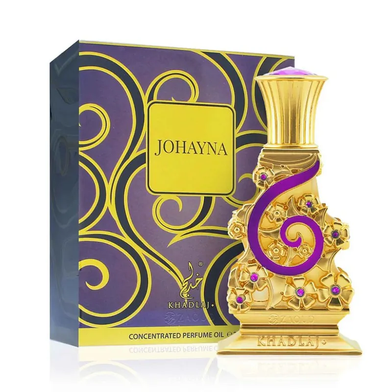 Khadlaj Johayna Purple Perfumed Oil atsiveria gyvybingomis ir pikantiškomis kivio, rabarbarų ir rausvųjų pipirų natomis, sukuriant jaudinantį ir gaivinantį pradžią. Kvapo širdyje atsiskleidžia švelnus arbūzo, ciklameno ir jazmino derinys, suteikiantis kompozicijai gėlių saldumo ir vandens gaivumo. Bazinės natos – šiltas citrinmedžio, muskuso ir sandalmedžio pagrindas – palieka nepamirštamą elegancijos ir žavesio šleifą. Johayna Purple yra puikus vaisių gaivumo, gėlių elegancijos ir medienos šilumos derinys – idealus aksesuaras bet kokiai progai. Dėl savo koncentruotos formulės, užtepkite nedidelį kiekį ant pulso taškų, kad mėgautumėtės ilgai išliekančiu kvapu.