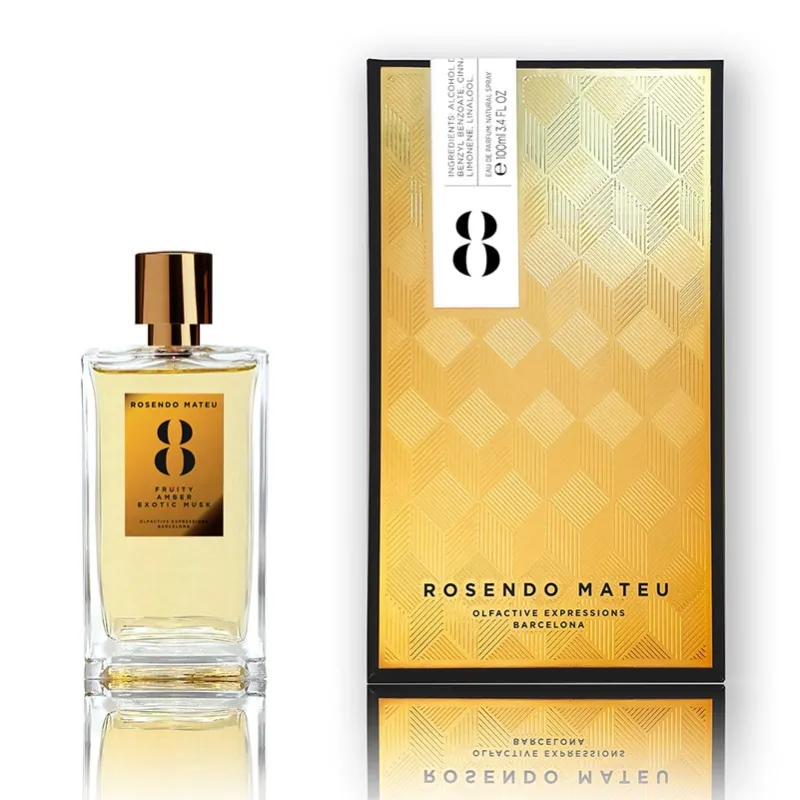 Rosendo Mateu N° 8 Fruity, Amber, Exotic Musk – tai naujas, 2024 metais pristatytas unisex aromatas iš Rosendo Mateu Olfactive Expressions kolekcijos. Šis parfumuotas vanduo priklauso vaisių, ambros ir egzotiško muskuso kvapų grupei, sukurtas parfumerių Rosendo Mateu, Joan Mateu ir Marc Daniel Heimgartner. Tai šiuolaikiškas ir elegantiškas aromatas, skirtas tiek vyrams, tiek moterims, vertinantiems nišinius, ilgai išliekančius ir daugiasluoksnius kvapus.