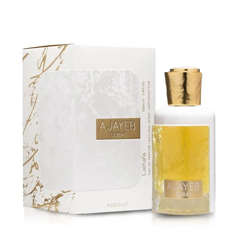 „Lattafa Perfumes Ajayeb Dubai Portrait“ – tai ryškus, vaisinis ir medienos-ambros aromatas, skirtas tiek vyrams, tiek moterims, išleistas 2023 metais. Šis kvapas puikiai tinka tiems, kurie vertina eleganciją, gyvybingumą ir nori palikti šviesų, bet įsimintiną įspūdį. Jis pasižymi sultinga ir gyvybinga vaisių (ypač mangų), citrusinių vaisių, baltųjų gėlių ir šiltų medienos bei ambros natų kompozicija, kuri apgaubia gaiva, egzotika ir rafinuotumu. „Ajayeb Dubai Portrait“ idealiai tinka kasdieniam dėvėjimui, ypač šiltuoju metų laiku (pavasarį ir vasarą), ir bet kada, kai norisi jaustis žvaliai, pasitikinčiai ir išskirtinai.