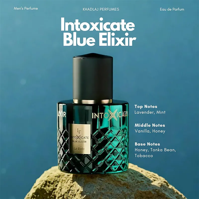 Tai intensyvus, prabangus ir hipnotizuojantis citrusinių-aromatinis-medienos aromatas vyrams, pasižymintis ypač aukšta koncentracija. „La Fede Intoxicate Blue Elixir Extrait de Parfum“ yra sukurtas pabrėžti vyro charizmą, rafinuotumą ir nenugalimą patrauklumą, įkūnijant paslaptingą ir viliojančią aurą. Šis kvapas simbolizuoja išskirtinumą ir pasitikėjimą savimi, idealiai tinkantis šiuolaikiniam vyrui, kuris drąsiai išsiskiria iš minios ir nori palikti ilgalaikį, užburiantį įspūdį. Aukšta „Extrait de Parfum“ koncentracija užtikrina išskirtinį ilgalaikiškumą ir projekciją.