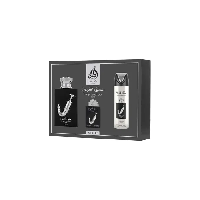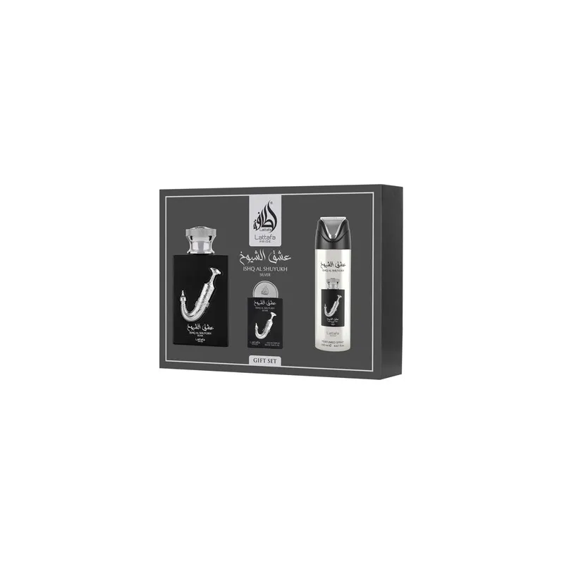 Lattafa Perfumes Ishq Al Shuyukh Silver Gift Set - rinkinys - EDP 100 ml, dezodorantas 200 ml ir EDP 20 ml
