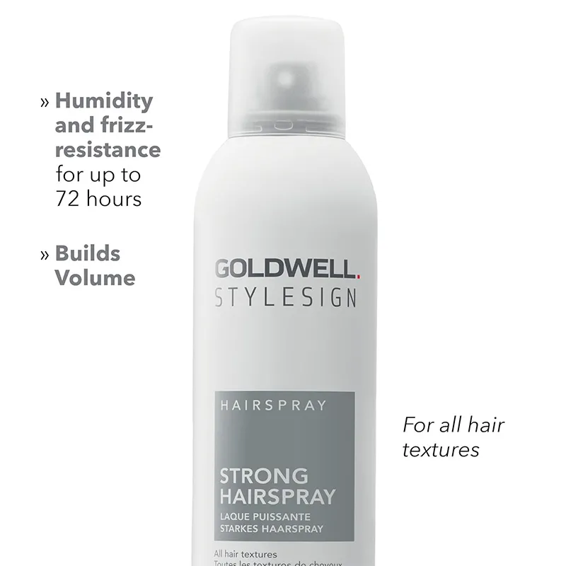 „Goldwell StyleSign Hairspray Strong“ – tai profesionalus plaukų lakas, užtikrinantis patikimą, stiprią fiksaciją, skirtą ilgai išliekančioms šukuosenoms. Šis lakas suteikia plaukams kontrolę, apsaugą nuo drėgmės ir puikų blizgesį, neapsunkindamas plaukų ir nepalikdamas nemalonių lipnumo likučių. Idealiai tinka šukuosenoms, kurioms reikalinga maksimali ištvermė.
