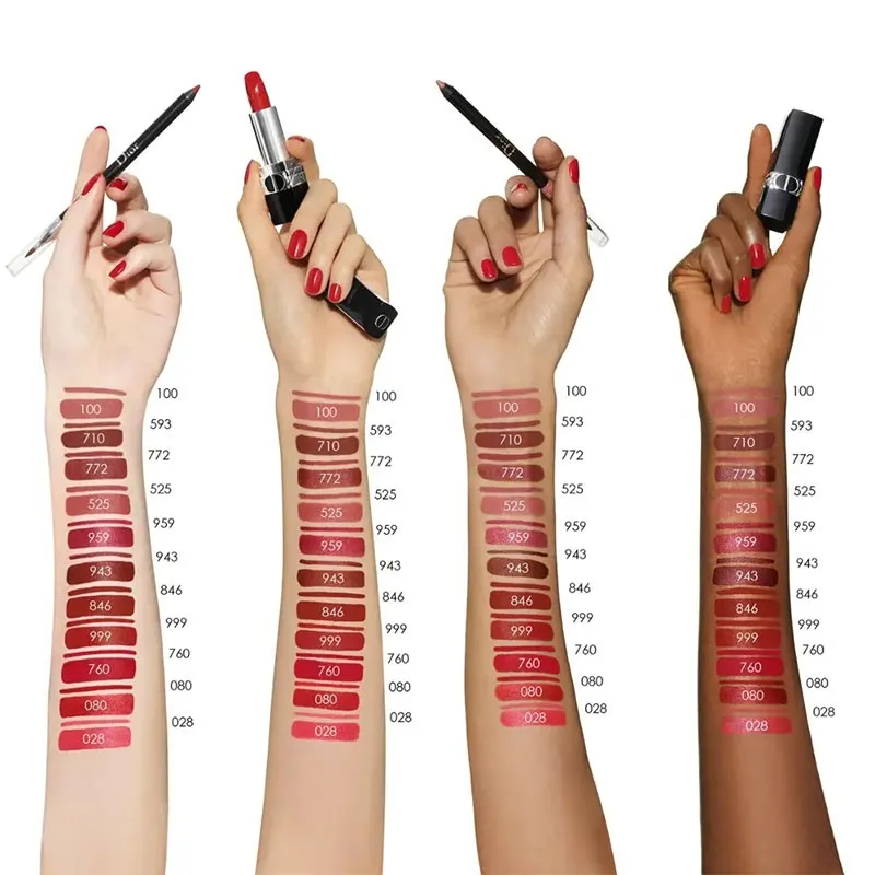 • Dior Rouge Dior – ikoniški lūpų dažai, siejami su aukštosios mados estetika.