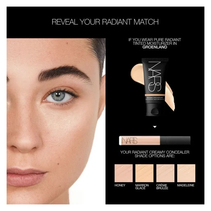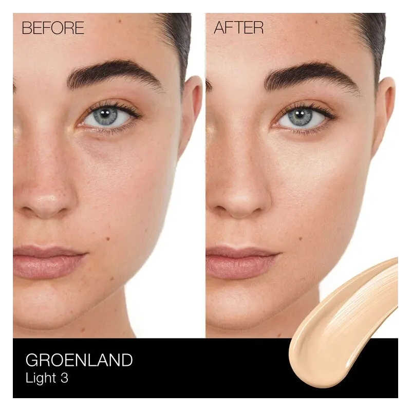 „NARS Pure Radiant Tinted Moisturizer SPF 30“ – tai kultinis odos priežiūros ir makiažo hibridas, sukurtas suteikti odai natūralų spindesį, lengvą padengimą ir kasdienę apsaugą. Šis aliejinis, lengvai dengiamas drėkinamasis kremas su atspalviu puikiai tinka tiems, kurie ieško kasdienės priemonės, sulyginančios odos toną, suteikiančios drėkinimo ir apsaugos nuo saulės, bet neapsunkinančios odos. „Groenland“ atspalvis yra skirtas šviesiai odai su šiltu, persikiniu potoniu.