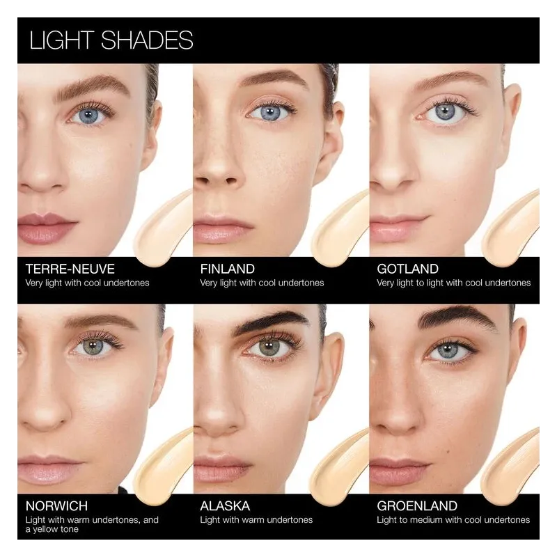 - NARS Natural Radiant Longwear Foundation – makiažo pagrindas, vertinamas dėl ilgalaikio ir tolygaus padengimo.