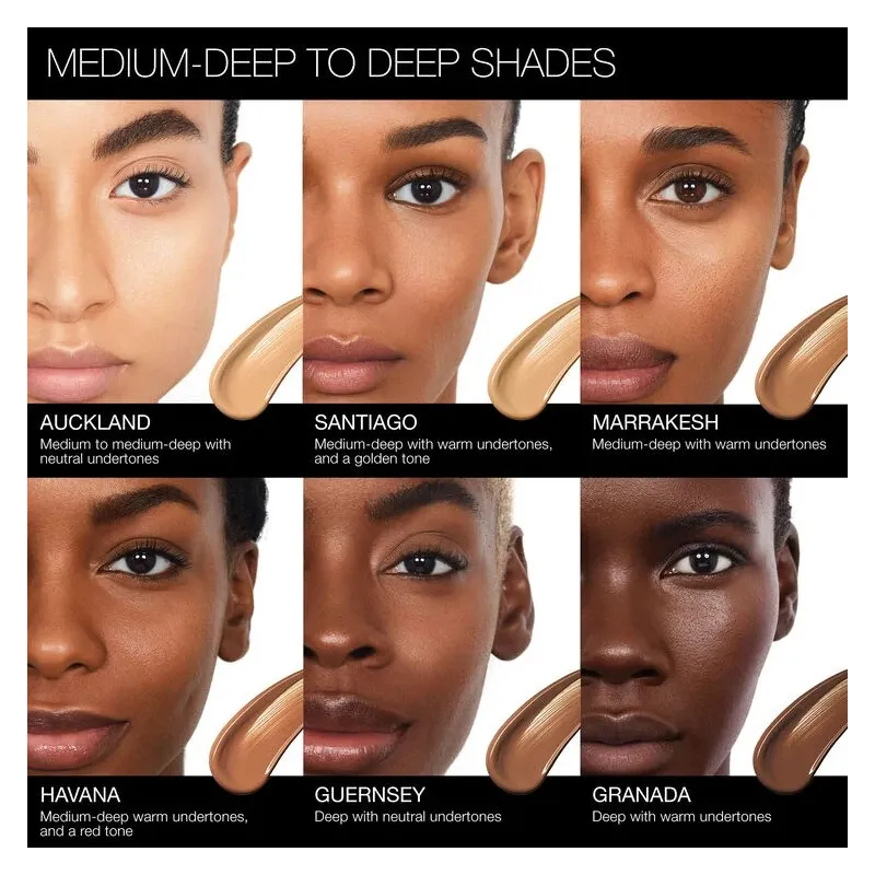 - NARS Natural Radiant Longwear Foundation – makiažo pagrindas, vertinamas dėl ilgalaikio ir tolygaus padengimo.