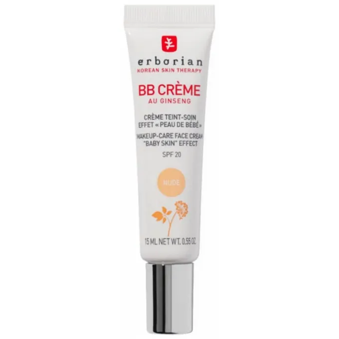 Erborian BB Creme Make-up Care Face Cream SPF 20 – daugiafunkcis veido kremas su spalva, jungiantis makiažo ir odos priežiūros savybes. Formulė padeda sulyginti odos atspalvį, paslėpti smulkius netobulumus ir suteikti natūralų, švytintį efektą, kartu užtikrinant SPF 20 apsaugą nuo saulės.