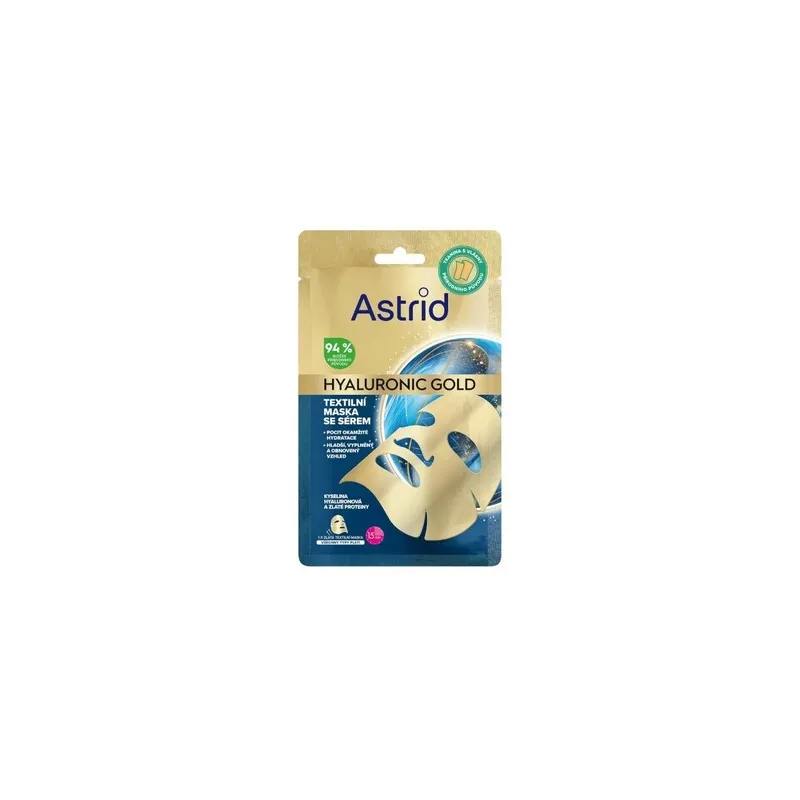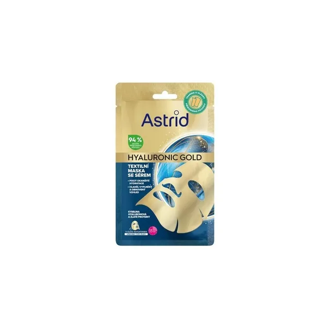 Astrid Hyaluronic Gold Mask - Tekstilinė kaukė su baltymais, skirta lygesnei išvaizdai ir odos apimties atstatymui
