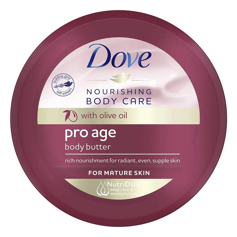 Dove Pro Age Body Butter – tai puikus sprendimas norint turėti glotnią, apibrėžtą ir gyvybingą odą, kuri atrodys nepriekaištingai visą dieną!
