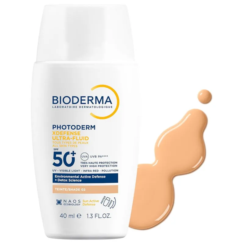 Bioderma Photoderm Xdefense Ultra-Fluid SPF 50+ – Ultrafluid apsauga nuo saulės ir taršos su atspalviu (02), 40 ml