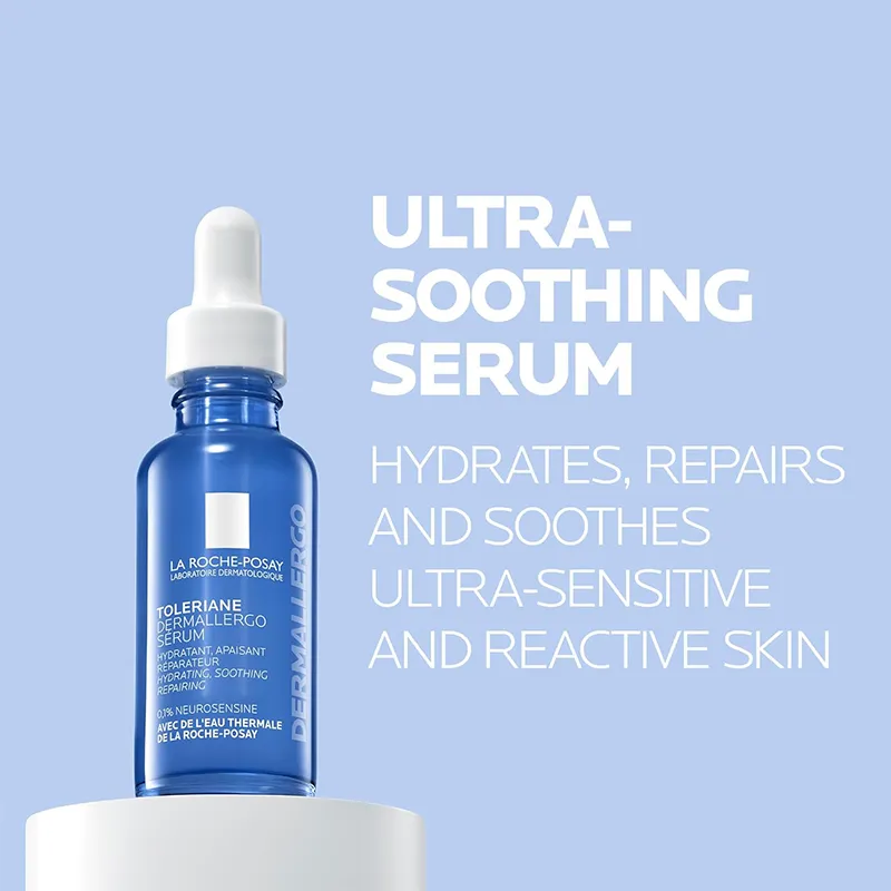 „La Roche-Posay Toleriane Dermallergo“ – tai itin koncentruotas, kasdienio naudojimo serumas, sukurtas itin jautriai, į alergiją linkusiai ir reaktyviai odai. Ši priemonė veikia kaip „skubioji pagalba“ sudirgusiai odai: ji akimirksniu numalšina diskomfortą, mažina raudonį ir stiprina odos apsauginį barjerą. Lengva, gaivi tekstūra užtikrina ilgalaikį drėkinimą ir padeda odai tapti atsparesnei išoriniams dirgikliams.