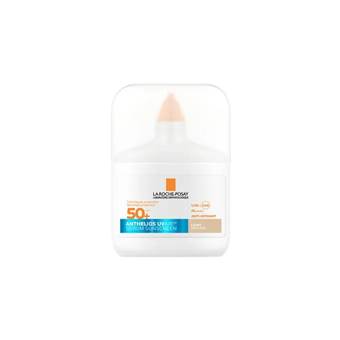 La Roche-Posay UVAir Tinted Serum SPF 50+ Light – tai itin lengvos tekstūros tonuotas apsauginis serumas nuo saulės, kuris sujungia aukštą SPF 50+ apsaugą su odą išlyginančiu, natūraliu atspalviu.