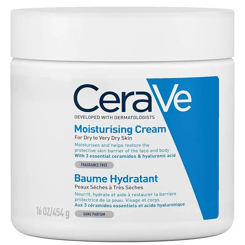- CeraVe Moisturising Cream – vienas žinomiausių drėkinamųjų kremų kasdienei veido ir kūno priežiūrai.