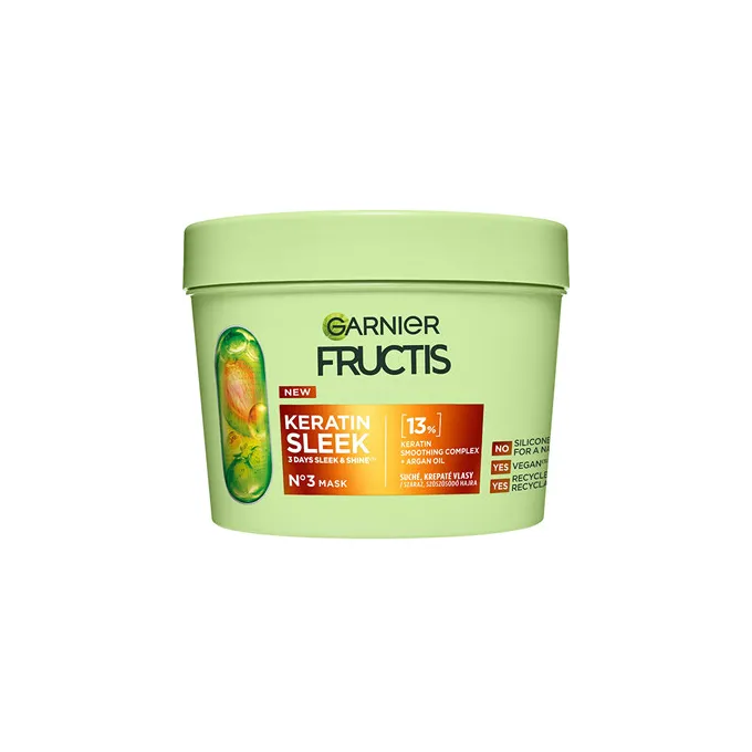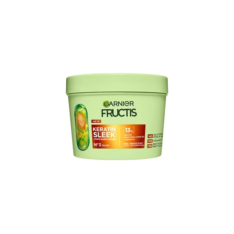 GARNIER Fructis Keratin Sleek Mask - Kaukė sausiems ir slenkantiems plaukams, 370 ml