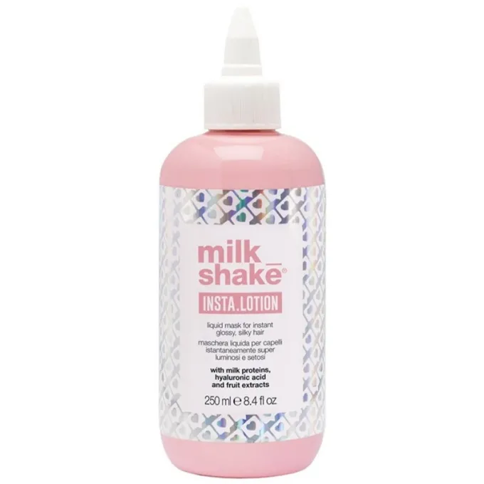 „Milk_Shake Insta. Lotion Liquid Mask“ yra greito poveikio, nuplaunama skysta plaukų kaukė, kurios tikslas – akimirksniu suteikti plaukams glotnumo, blizgesio ir šilko švelnumo. Dėl savo lengvos, kaip vanduo, tekstūros, priemonė greitai pasisavinama, idealiai tinka plaukams, kuriuos sunku suvaldyti, kurie veliasi, pučiasi ar yra pažeisti.