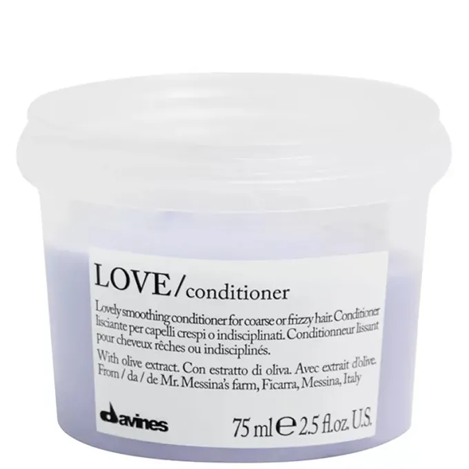Davines Essential Haircare LOVE Smoothing Conditioner – glotninantis kondicionierius, skirtas nepaklusniems, besipučiantiems ir sunkiai valdomiems plaukams. Kreminė formulė padeda sušvelninti plaukų struktūrą, palengvina iššukavimą ir suteikia plaukams glotnesnę, tvarkingesnę išvaizdą be apsunkinimo.