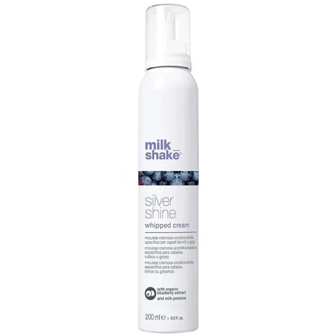 Milk_Shake Silver Shine Whipped Cream yra nenuplaunamos kondicionuojančios putos (plakta grietinėlė), skirtos šviesiems, balintiems, pilkiems ir šviesintiems plaukams. Šis produktas atlieka dvi pagrindines funkcijas: neutralizuoja nepageidaujamus atspalvius ir giliai kondicionuoja plaukus.