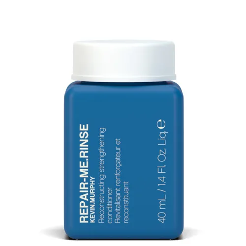 Kevin Murphy Repair-Me.Rinse yra profesionalus, giliai atkuriantis ir stiprinantis kondicionierius, skirtas pažeistiems, sausiems, lūžinėjantiems ir chemiškai apdorotiems plaukams. Šis 40 ml tūrio produktas yra puikus pasirinkimas norint išbandyti priemonę prieš įsigyjant didesnę pakuotę arba turėti ją su savimi kelionėse. Kondicionierius praturtintas žaliosios žirnių proteinais, taukmedžio sviestu bei alavijo ekstraktu, kurie giliai maitina plaukus, atkuria jų elastingumą ir apsaugo nuo lūžinėjimo.