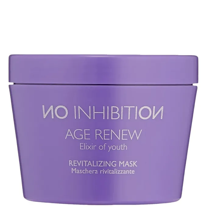 No Inhibition Age Renew Revitalizing Mask – intensyviai atkurianti plaukų kaukė, skirta visų tipų plaukams, kuriems reikia daugiau gyvybingumo, drėgmės ir struktūros. Ji giliai maitina plaukus, gerina jų elastingumą bei suteikia glotnumo ir žvilgesio, neapsunkindama plaukų.