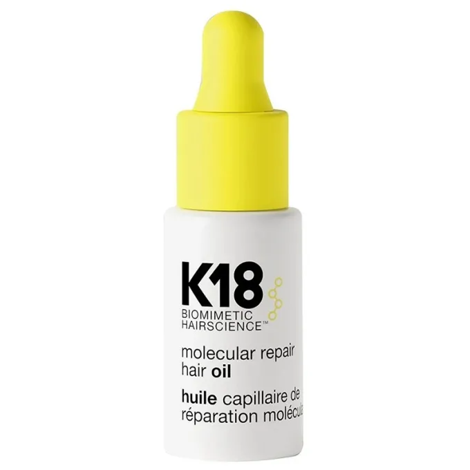 K18 Molecular Repair Hair Oil yra naujos kartos, itin koncentruotas nenuplaunamas aliejus, kuris ne tik suteikia plaukams šilkinio švelnumo ir blizgesio, bet ir atlieka molekulinį plaukų atkūrimą bei apsaugą. Jis veikia kaip „K18 Molecular Repair“ rutinos papildymas, skirtas kasdieninei plaukų priežiūrai ir apsaugai nuo žalos.