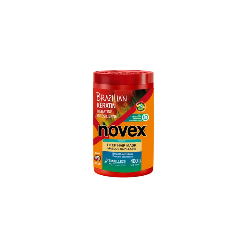 Novex Brazilian Keratin Deep Hair Mask - kaukė sausiems ir pažeistiems plaukams, 400 ml