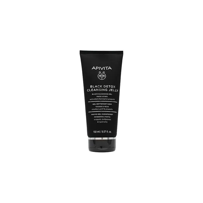 Apivita Black Detox Cleansing Jelly - valomasis gelis su aktyvuota anglimi veidui ir akims, 150 ml