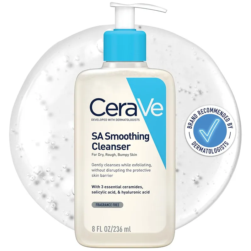 • CeraVe SA Smoothing Cleanser – dažnai pasirenkamas odos tekstūros priežiūrai.
