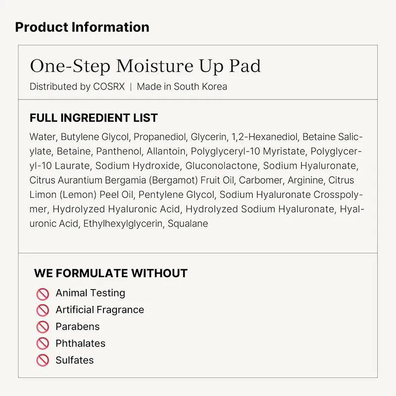 COSRX produktų formulės kuriamos akcentuojant aiškiai identifikuojamus aktyviuosius komponentus, tokius kaip rūgštys, sraigių sekreto filtratas ar raminamieji ingredientai. Formulių kryptis orientuota į paprastą sudėtį, lengvas tekstūras ir gerą toleravimą, kad produktai būtų lengvai integruojami į kasdienę veido odos priežiūros rutiną.