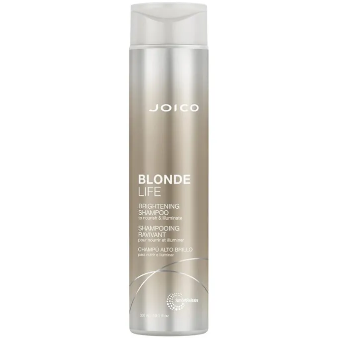 Joico Blonde Life Brightening Shampoo yra švelnus, be sulfatų šampūnas, specialiai sukurtas šviesintiems, balintiems ar šviesiems plaukams. Jis švelniai valo, neutralizuoja nepageidaujamus mineralus ir padeda išlaikyti šviesos spalvos ryškumą ir spindesį.
