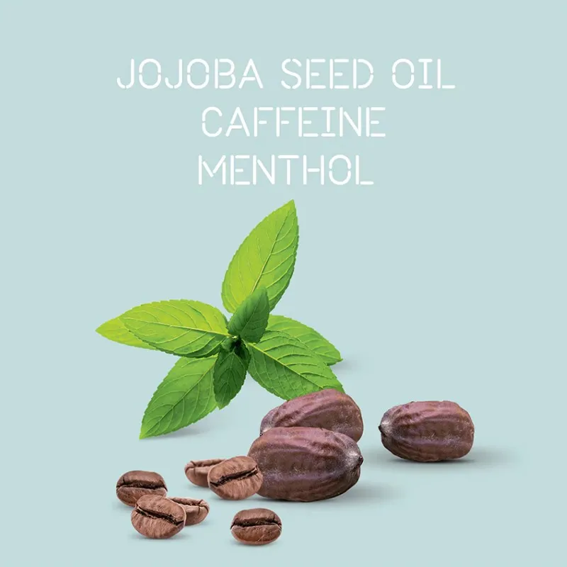 - Masažas: Švelniai įmasažuokite į galvos odą, kad aktyvuotumėte kofeino ir mentolio poveikį.