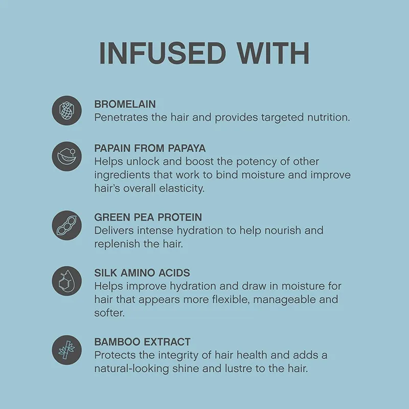 - Gilus atkūrimas: Formulė, praturtinta šilko ir bambuko ekstraktais, veikia plaukų skaidulas, atkuria pažeistas vietas ir sustiprina plaukus iš vidaus.