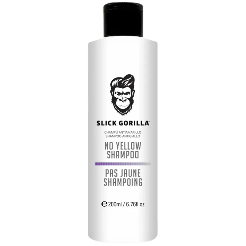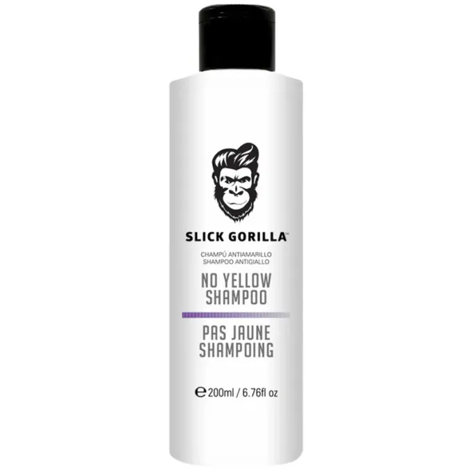 - Slick Gorilla No Yellow Shampoo – specializuotas šampūnas šviesintiems ar žiliems plaukams prižiūrėti.